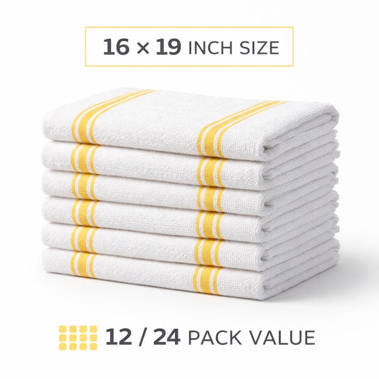 Bar Mop Towel 12-24 Pack Cleaning Kitchen Towels 16"x19" Cotton Yellow Stripe
